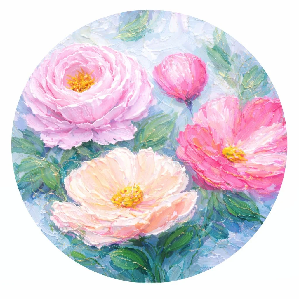 Spring Flowers on Round Canvas